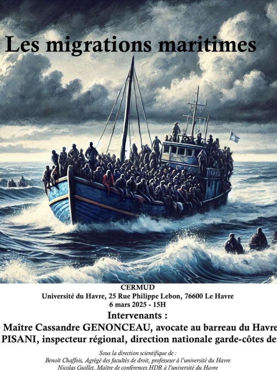 Maître GENONCEAU présentera ses travaux de recherche sur les droits fondamentaux du migrant en mer à l'occasion d'un séminaire organisé par le Centre de Recherche sur les Mutations du Droit et les mutations sociales de l'Université du HAVRE.
